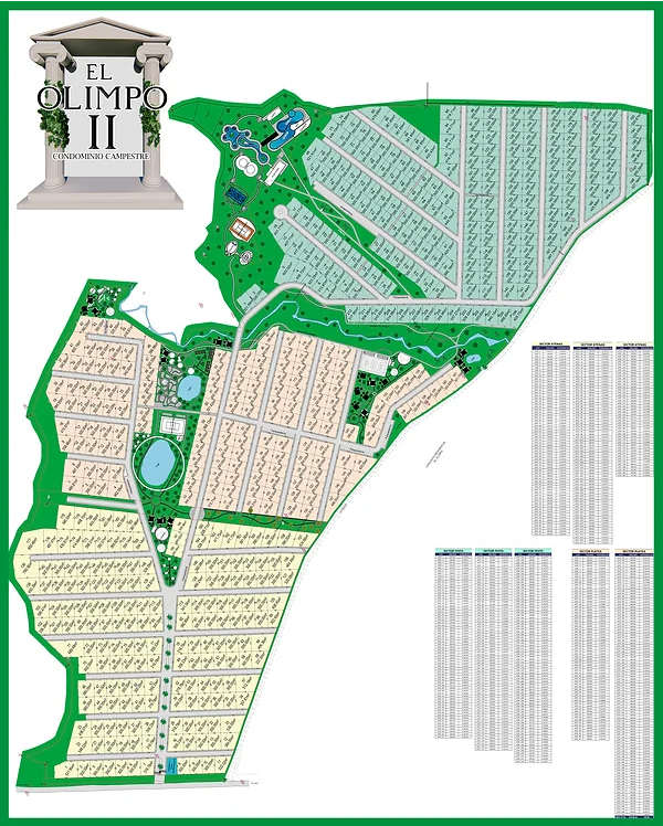 El condominio campestre Olimpo II cuenta con 556 lotes distribuidos en 3 sectores: Atenas 183 lotes, platea 161 lotes y festo 212 lotes desde 300 hasta 850 m2 aproximadamente, Condominio Sometido a régimen de propiedad Horizontal, ubicado sobre la vía que conduce del Carmen de Apicala al Paso, zona con mayor valorización en el Carmen de apicalá.